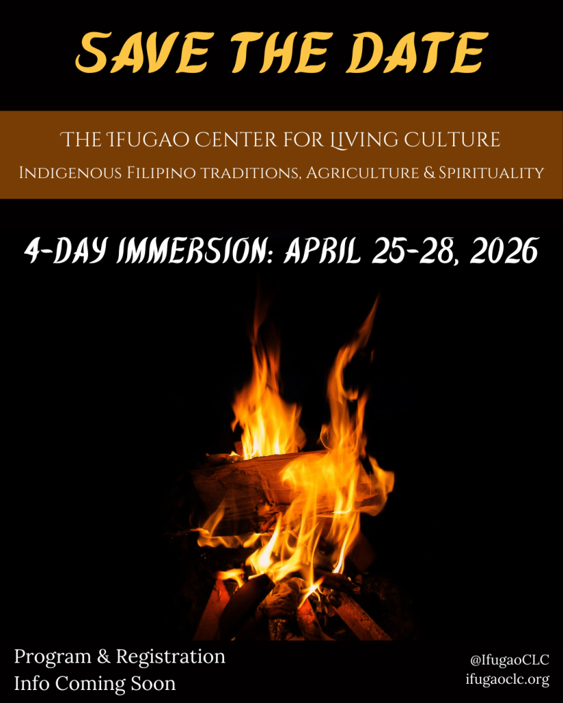 This year’s first Immersion event will take place during the transplanting cycle of our seasonal agricultural calendar. It is scheduled with the local town’s Imbayah Celebration (held in Banaue, Ifugao from April 28-May 2), so that participants can attend additional cultural events if they wish, featuring traditional programming, food, and activities. Program and registration information to follow soon.